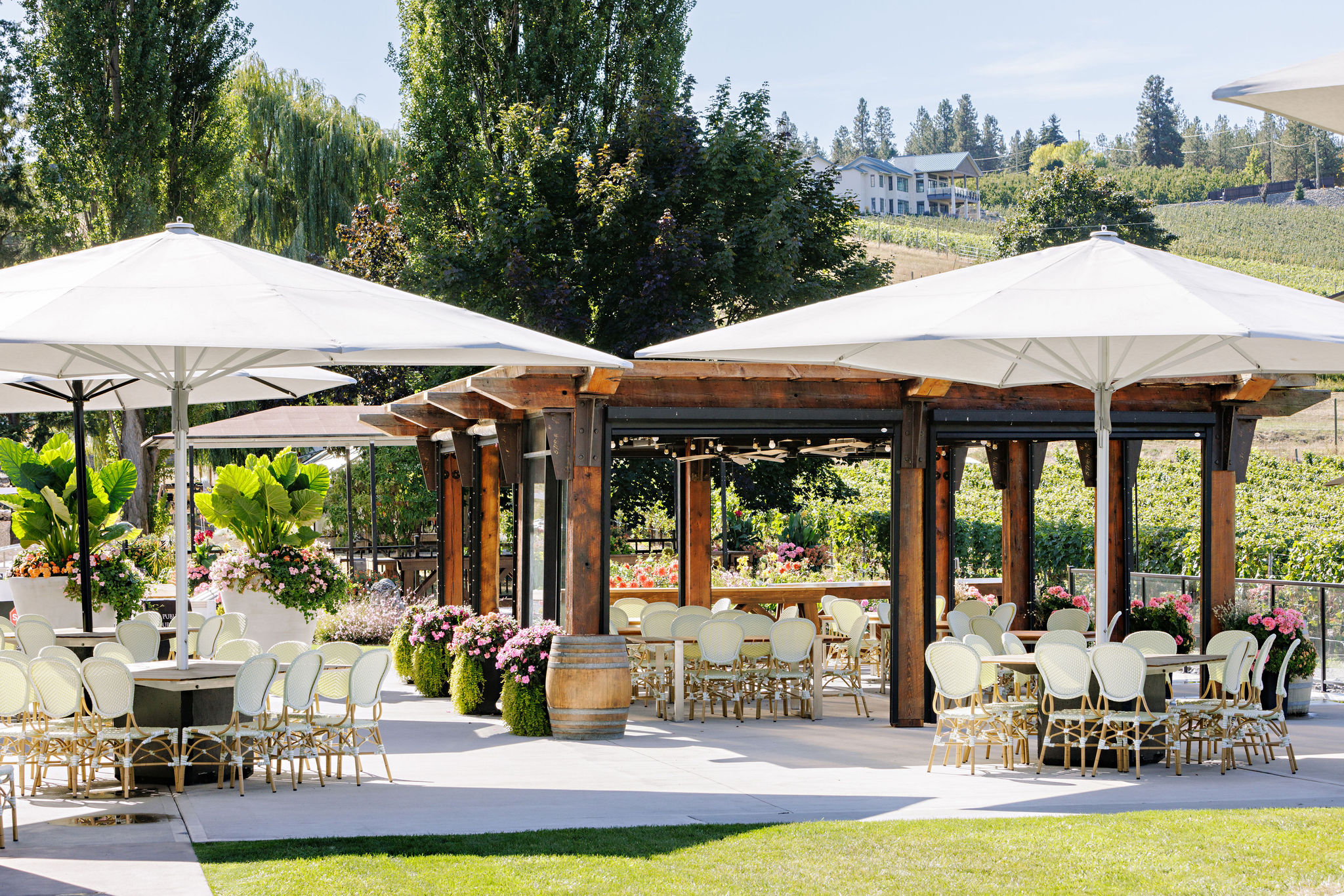 At the Garden Bistro, ranked the #1 restaurant in Lake Country, guests can enjoy vibrant, farm-to-table dining inspired by ingredients grown just steps away in our on-site garden. Expansive patios and a covered pergola overlook the vineyard, offering a relaxed, scenic setting to take in the views.